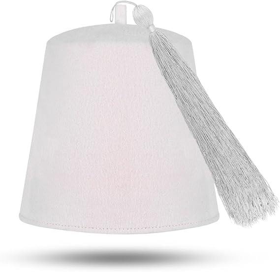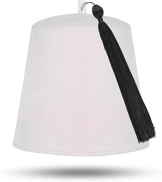 หมวกเฟซแบบธรรมดาของสมาคมเมสัน - ทำจากขนสัตว์สีน้ำตาลแดง พร้อมพู่หลากสี วัสดุคุณภาพพรีเมียม ขนสัตว์แท้ 100%
