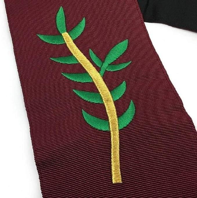 ชุดเครื่องราชอิสริยาภรณ์มาซอนิก ระดับเจ้าหน้าที่ชั้นที่ 14 ผ้ากันเปื้อนและปลอกคอ ทำจากหนังคุณภาพ 9 ชั้น ผ้ากันเปื้อนปักลายอย่างสวยงาม