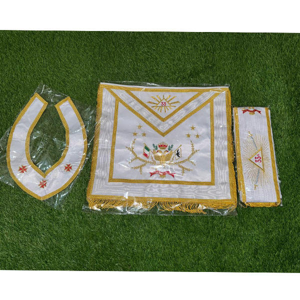 Masonic Regalia 33rd Degree Rose Croix Apron sash and Collar Set Hand Crafted Lecturer Set Hand Embroidered Gold white colors