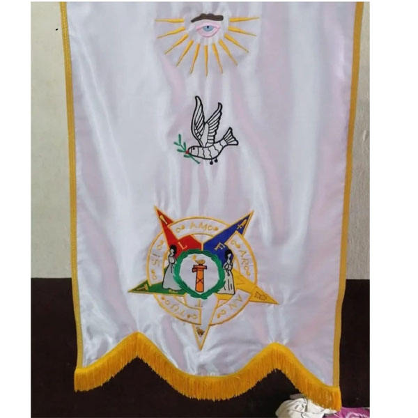 ธงปักลายสามเหลี่ยม 5 ดวง ของเครื่องราชอิสริยาภรณ์มาซอนิก สำหรับทำตราสัญลักษณ์สีขาวของออเดอร์ ออฟ อีสเทิร์น สตาร์ (O.E.S.) ที่ปักอย่างดีที่สุด