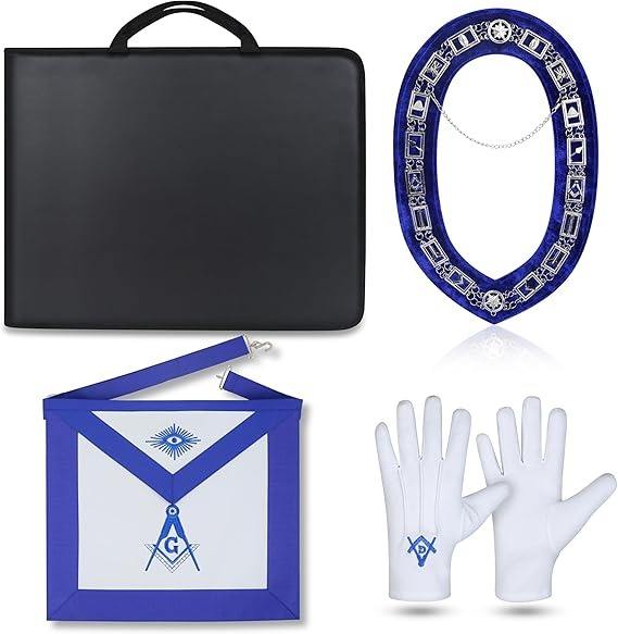 ชุดเครื่องราชอิสริยาภรณ์มาสเตอร์เมสัน บลูลอดจ์ +ผ้ากันเปื้อน + ปลอกคอ + ถุงมือ + กล่อง - ชุดแพ็คเกจ