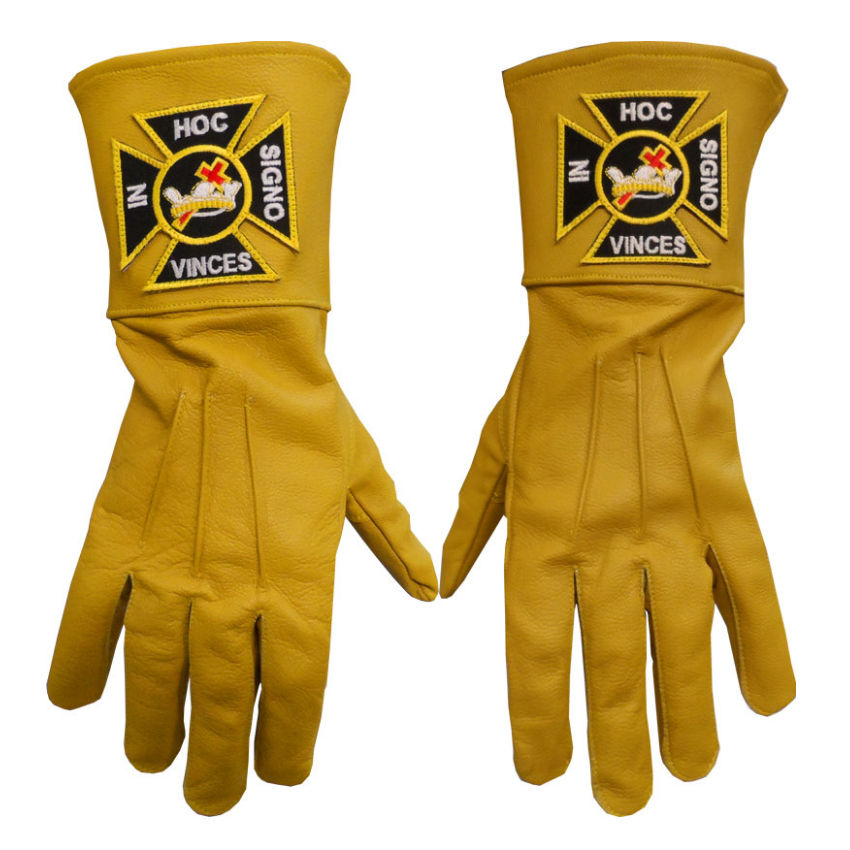 Masonic Regalia Genuine Leather Gloves Knight Templar Yellow Embroidery Prints Cross-Stitching & Needlework Crafts