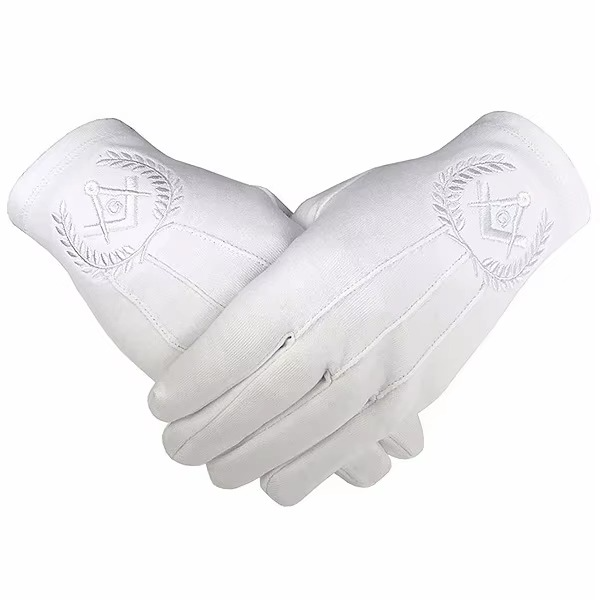 ถุงมือเครื่องราชอิสริยาภรณ์ฟรีเมสัน ถุงมือผ้าฝ้ายปักลายพร้อมโลโก้ มีจำหน่ายในราคาประหยัด พร้อมบริการออกแบบตามสั่ง