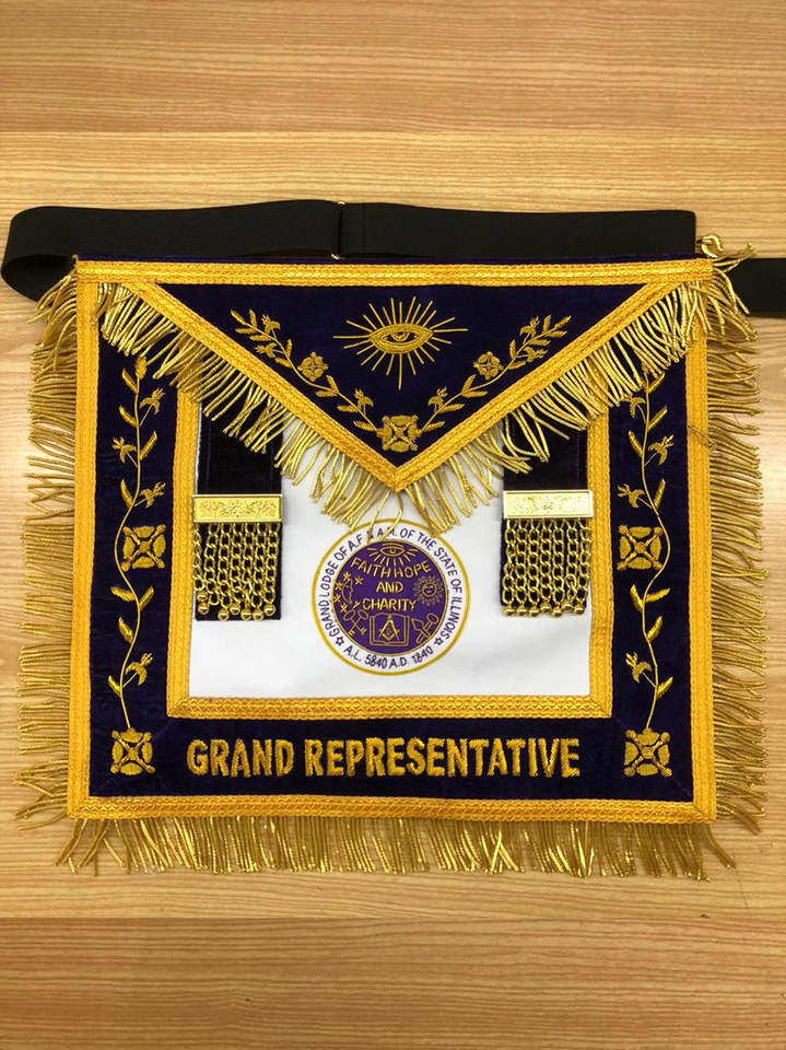 ผ้ากันเปื้อนปักลายสำหรับผู้รู้ทันนิยมแห่งแกรนด์ลอดจ์แห่งสมาคมเมสัน งานปักด้วยเครื่องจักร ออกแบบลายปักตามสั่ง