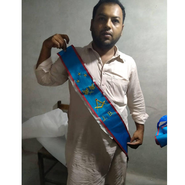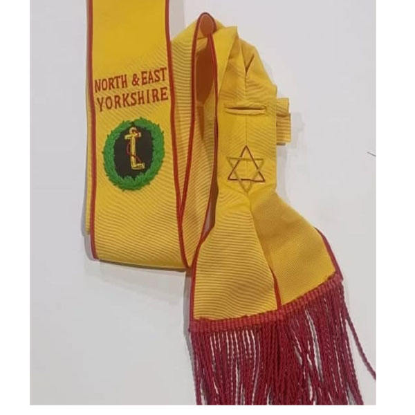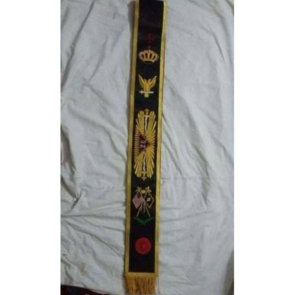 สายสะพายปักมือลายสัญลักษณ์มาซอนิก อีสเทิร์นสตาร์ OES สายสะพายห้าสัญลักษณ์สก็อตช์ไรต์ ระดับที่สี่ พร้อมโลโก้และดีไซน์ปกเสื้อสำหรับพิธีกรรม มีจำหน่ายในปี 2026