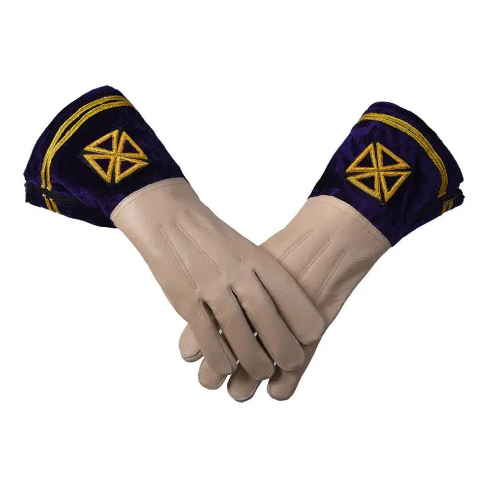 ถุงมือหนังนักบุญอัศวินมาสัน ตราสัญลักษณ์กากบาทแดง แบบนุ่ม สั่งทำได้ พร้อมโลโก้มาสัน บริการ OEM ถุงมือหนัง