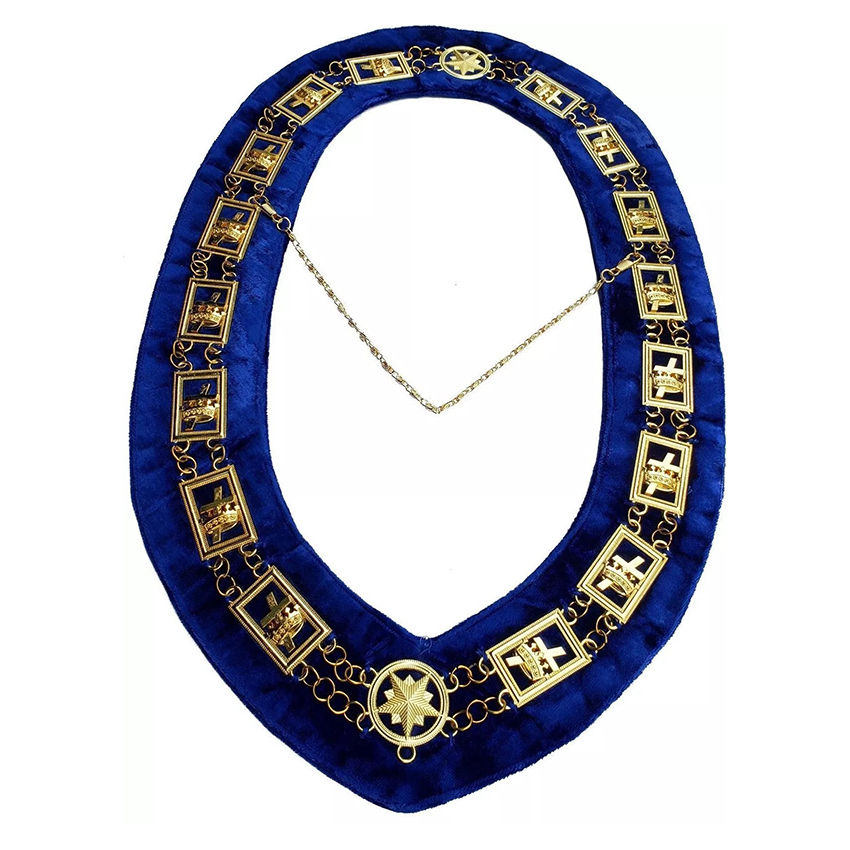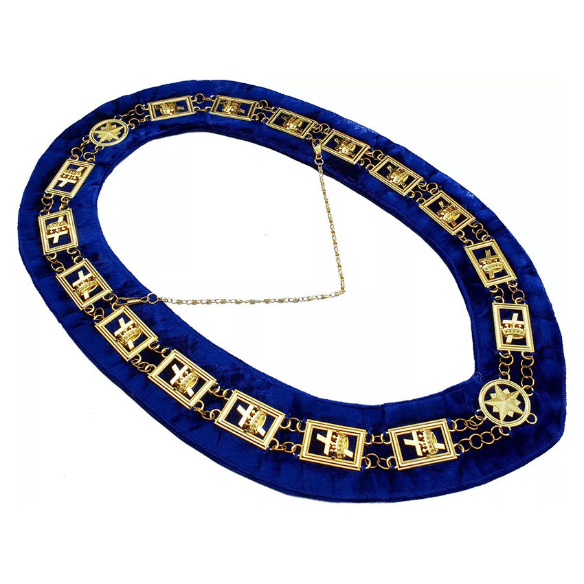เครื่องประดับเมสันอัศวินเทมพลาร์ สร้อยคอโลหะสีทอง ผ้ากำมะหยี่สีน้ำเงินคุณภาพสูง พร้อมสร้อยคอแบบกำหนดเองได้