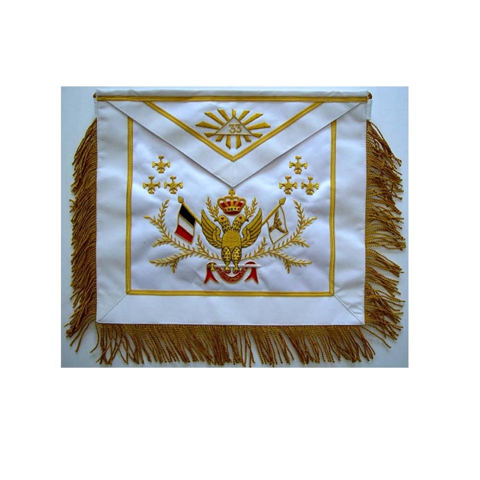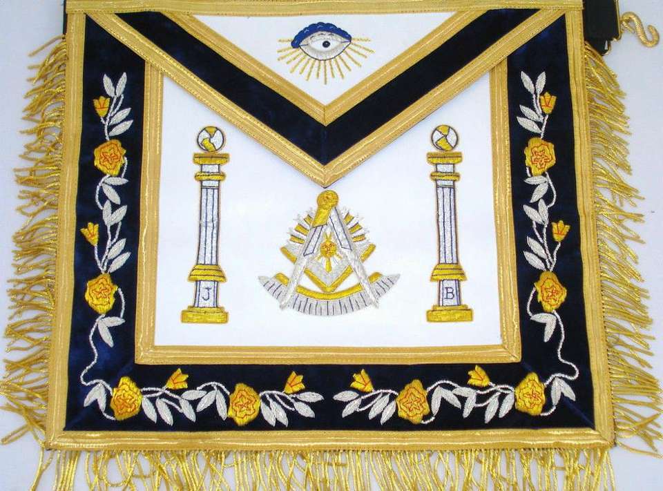 ผ้ากันเปื้อนมาสเตอร์ลอดจ์มาสันสีน้ำเงิน ผ้ากันเปื้อนคราฟต์มาสเตอร์เมสัน MM พร้อมกระเป๋า ปลอกคอ งานปัก งานเย็บปักถักร้อย