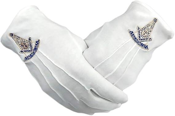 ถุงมือผ้าฝ้าย 100% สำหรับพิธีกรรมมาสเตอร์แห่งสมาคมเมสัน ปักด้วยเครื่องจักร สีขาวสวยงาม ผ้าฝ้ายคุณภาพดี