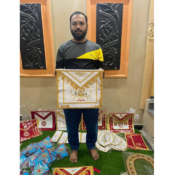 ผ้ากันเปื้อนพิธีกรรมเมสัน รุ่น Past Master ปักลายทอง พร้อมสายคล้องคอ ผ้ากำมะหยี่สีน้ำเงินด้านหลัง คุณภาพพรีเมียม ปักลาย ปี 2026