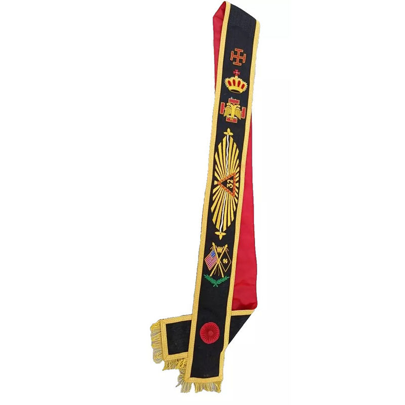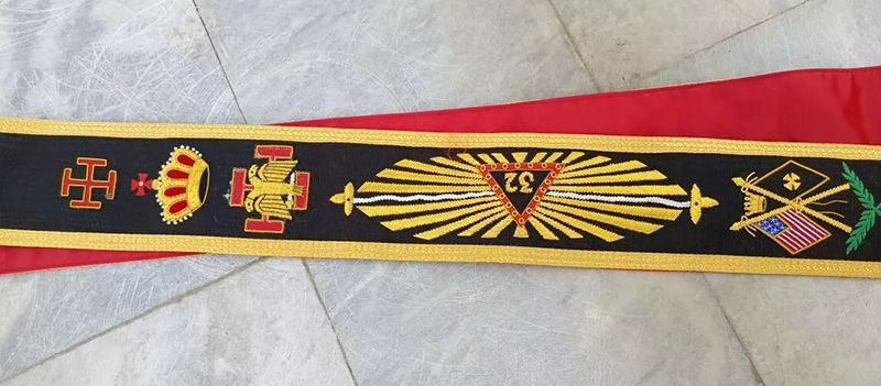 Masonic regalia scottish Rite 32องศาสายสะพายแบบปักด้วยมือสายสะพายสีดำคุณภาพสูงสั่งทำยี่ห้อเย็บเองได้