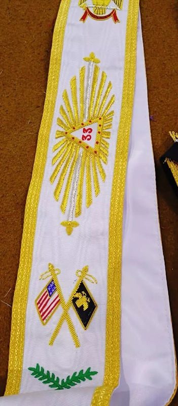 สายสะพายสีขาวปักดิ้นทองคำแบบสก็อตแลนด์ริต 33 องศา สำหรับพิธีกรรมมาซอนิก คุณภาพสูง ผลิตตามสั่ง ของใหม่