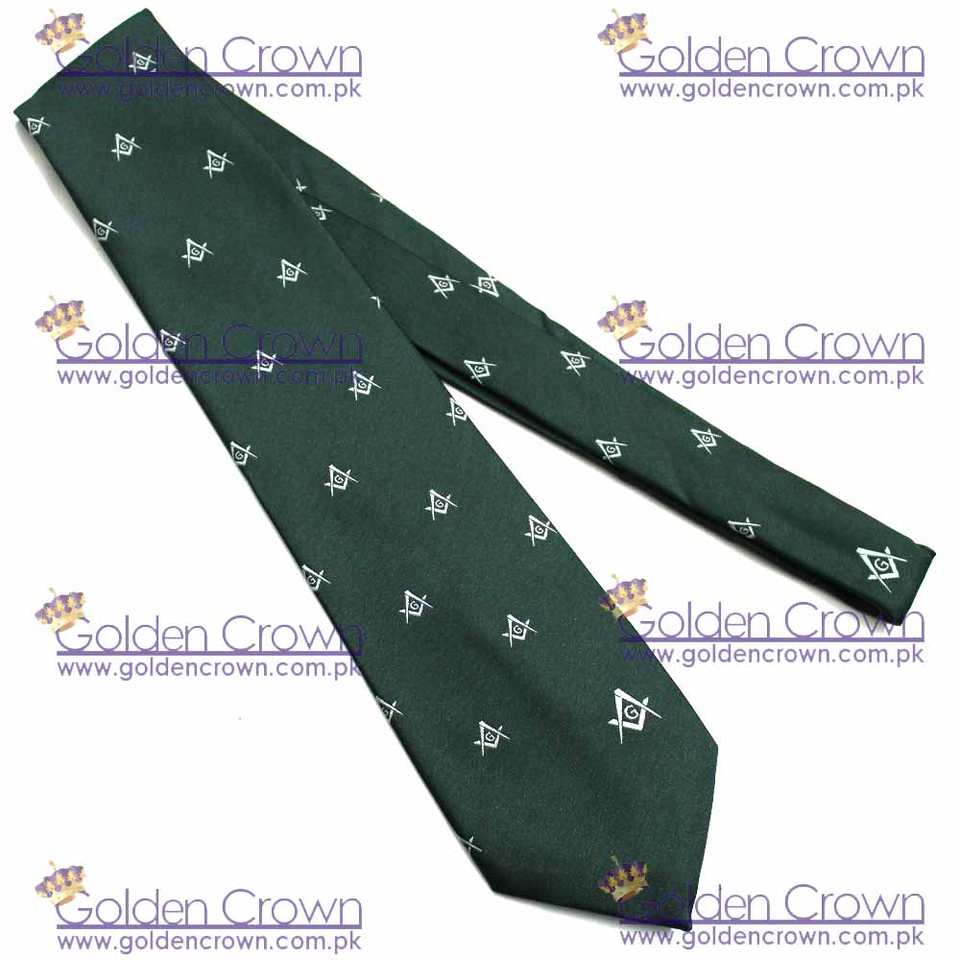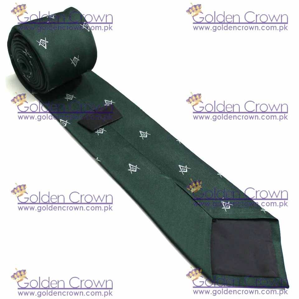 Masonic Regalia Silk Tie Embroidered Square Compass & G Green