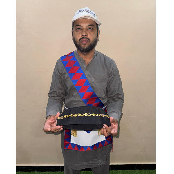 เครื่องราชอิสริยาภรณ์เมสัน ผ้าคลุมไหล่ยอร์เบียน โลจ รอยัล อาร์ช พร้อมผ้ากันเปื้อนและถุงมือ พร้อมหมวก แต่งด้วยเส้นด้ายสีทอง วัสดุสั่งทำพิเศษ ชุดใหม่ในปี 2025