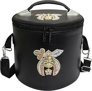กล่องเก็บหมวกเฟซ/หมวกแก๊ปของสมาคมเมสัน หนังสีดำ ปักมือด้วยเพชรเทียมและลวดทองเหลือง – กล่องจัดแสดงและเก็บรักษา