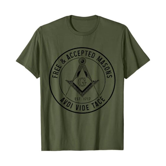 เสื้อยืดลายเมสันสำหรับผู้ชาย ลายเสาหิน ดวงดาว พระจันทร์ พระอาทิตย์ นาฬิกาทราย เคียว โลงศพ กิ่งไม้ อะคาเซีย รังผึ้ง