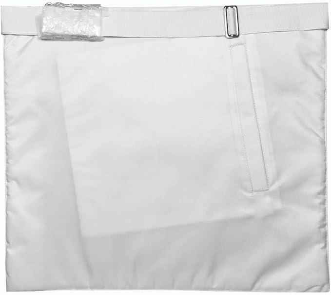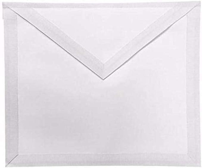 ผ้ากันเปื้อนสมาชิกฟรีเมสันสีขาว (มาตรฐาน) กระเป๋าหนังด้านหลัง ริบบิ้นสีขาวคุณภาพดีที่สุดพร้อมตราประทับน้ำ