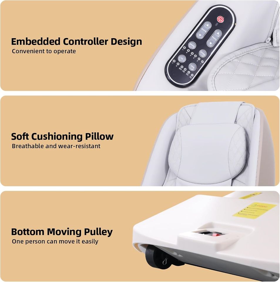 แบบพกพา, แรงโน้มถ่วงเป็นศูนย์, พับได้, การสั่นสะเทือน, นวดฝ่าเท้า, การดูแลสุขภาพ, เป็นมิตรกับสิ่งแวดล้อม, 4d manipulator, ประคบร้อน, sl tracking massage, ควบคุมเสียงอัจฉริยะ, ระบบบลูทูธ, การจัดการระยะไกลของคอมพิวเตอร์