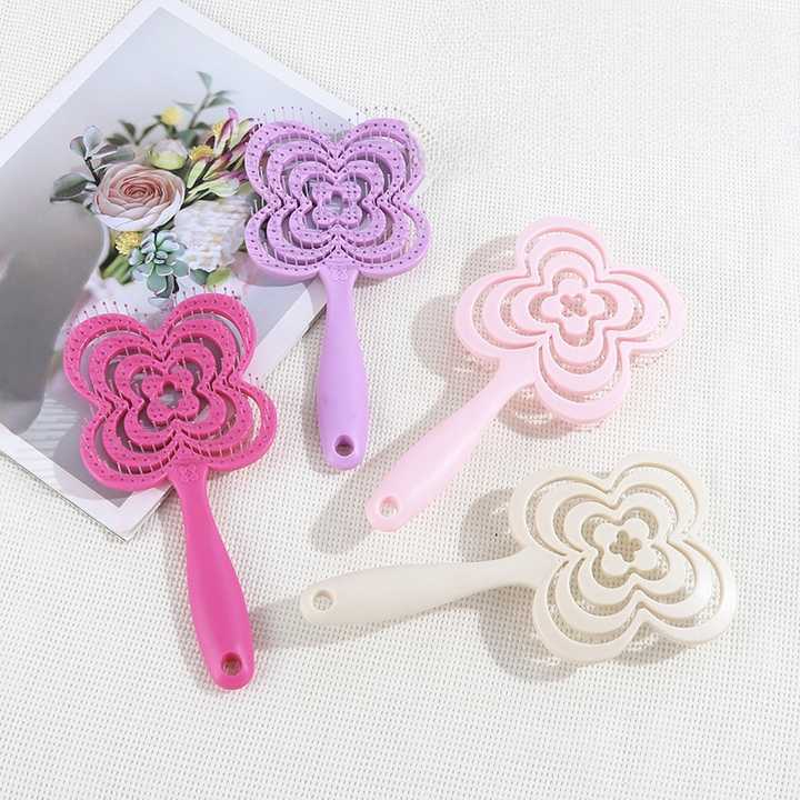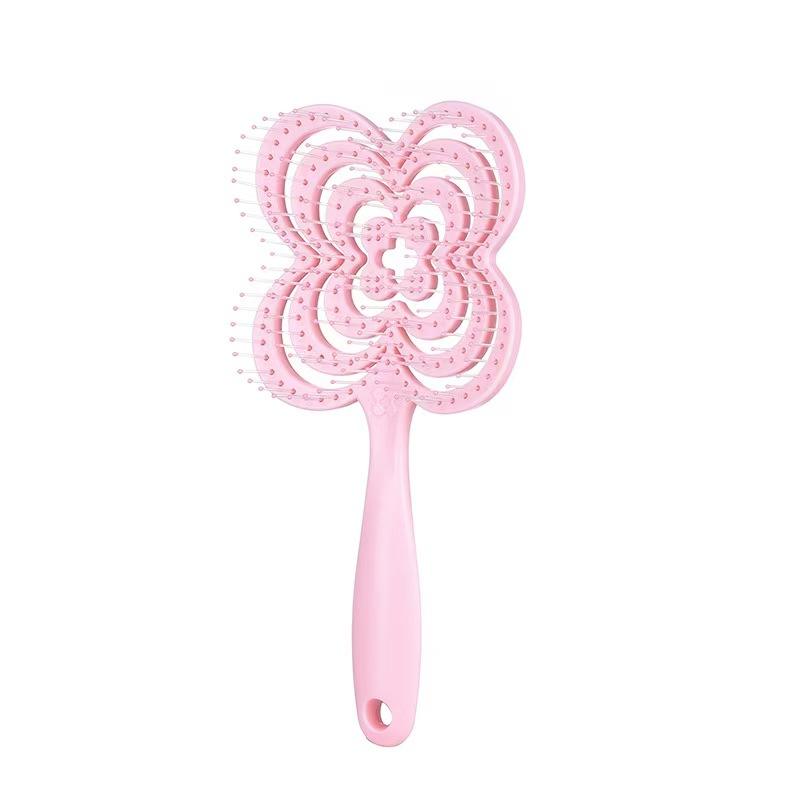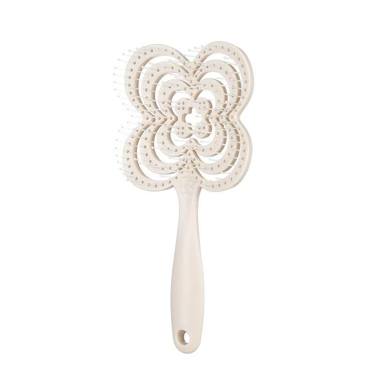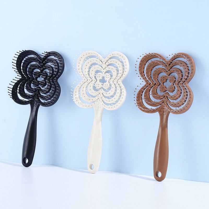 หวีจัดแต่งทรงผมแบบเปียกและแห้ง ใช้ได้สองแบบ ช่วยเพิ่มวอลลุ่ม ทรงกลม ปลายหวีแบบเข็ม แผ่นหลังโปร่ง รูปทรงใบโคลเวอร์สี่แฉก