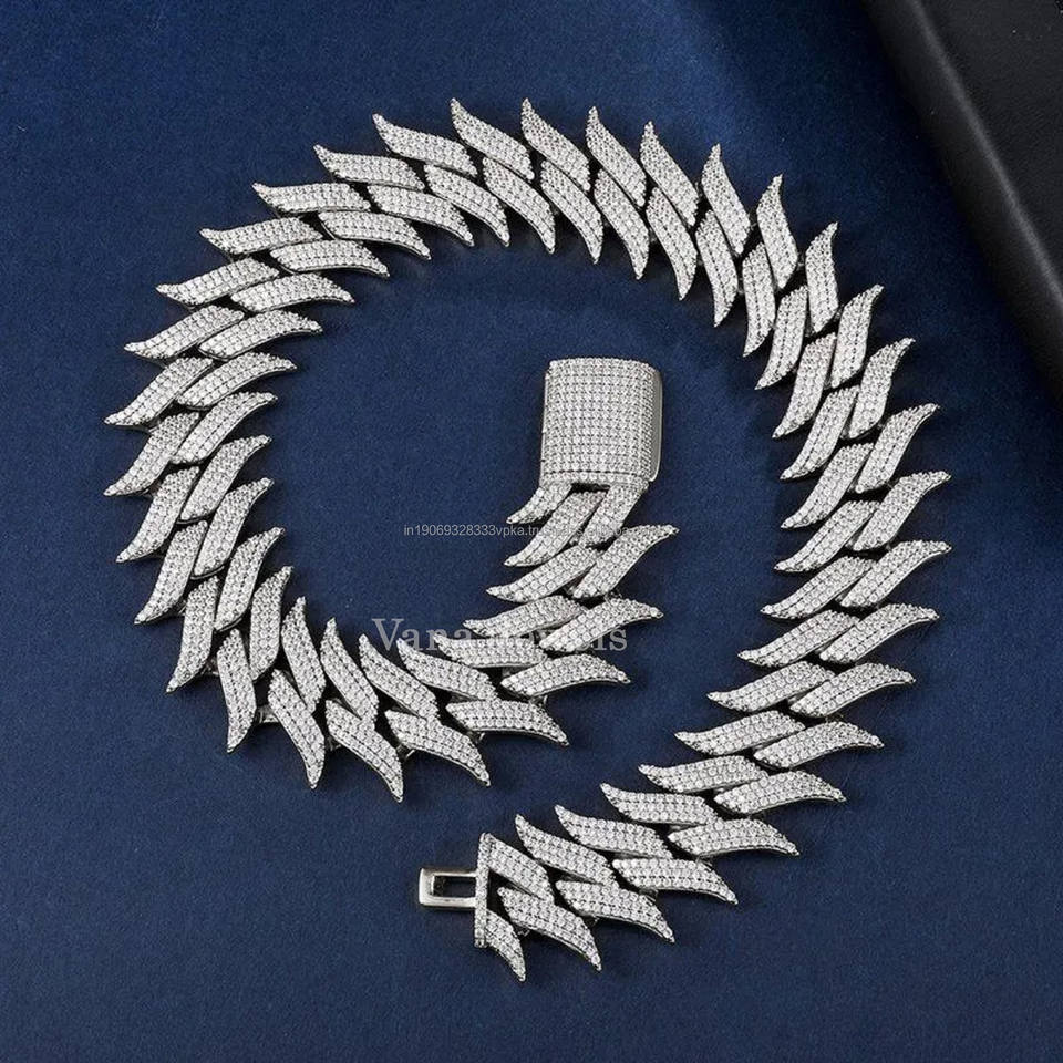 สร้อยคอเงินสเตอร์ลิง925เงาสูงขนาด29มม. ขนาด45ซม. ยาว18นิ้วแนวสตรีทฮิปฮอปยูนิเซ็กส์