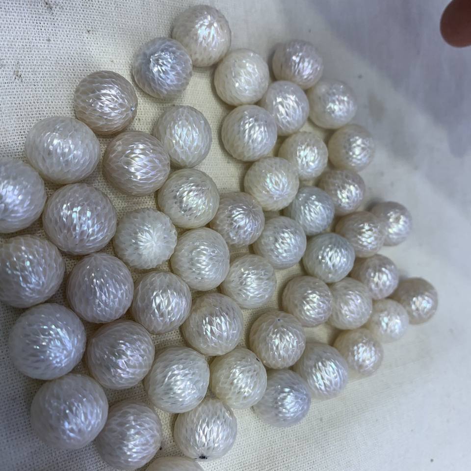 จี้ไข่มุกสีขาวทรงกลมสลักลายมังกรสำหรับทำเครื่องประดับ