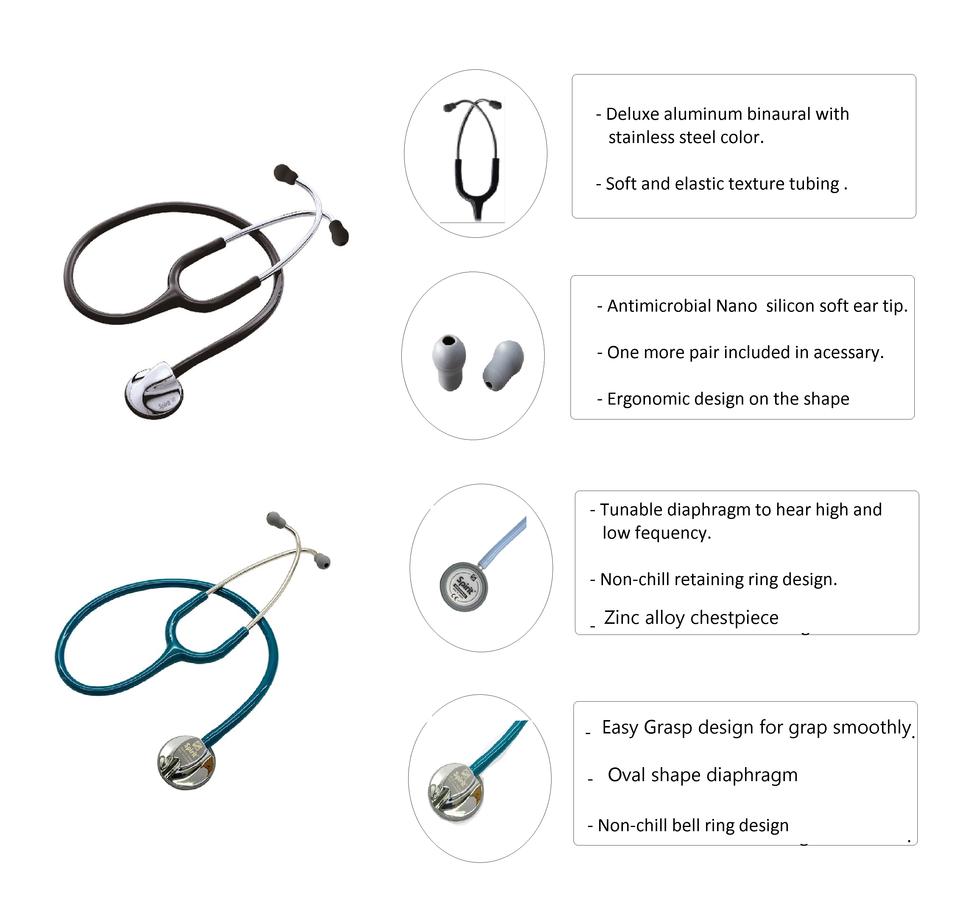 เครื่องฟังแพทย์ชุบทองคำขาวหัวเดี่ยวทำจากซิงค์อัลลอยปรับได้แบบแมนนวลสำหรับผู้ใหญ่