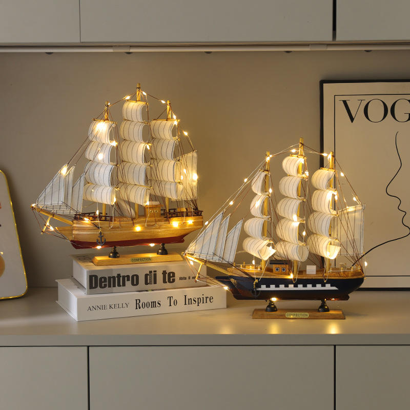 โมเดลเรือใบไม้ของอาจารย์กู พร้อมไฟตกแต่งบ้าน ของขวัญสำหรับวันเกิด ของขวัญขึ้นบ้านใหม่