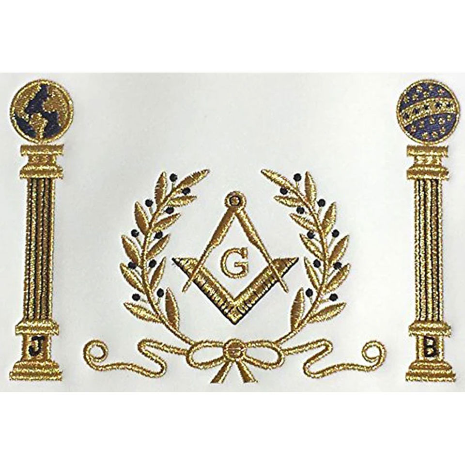 ผ้ากันเปื้อนมาสเตอร์เมสัน บลูลอดจ์ สีน้ำเงินกรมท่า พร้อมเสาประดับ ปักลายเครื่องราชอิสริยาภรณ์เมสัน ผ้ากันเปื้อนเมสันที่สวมใส่สบาย