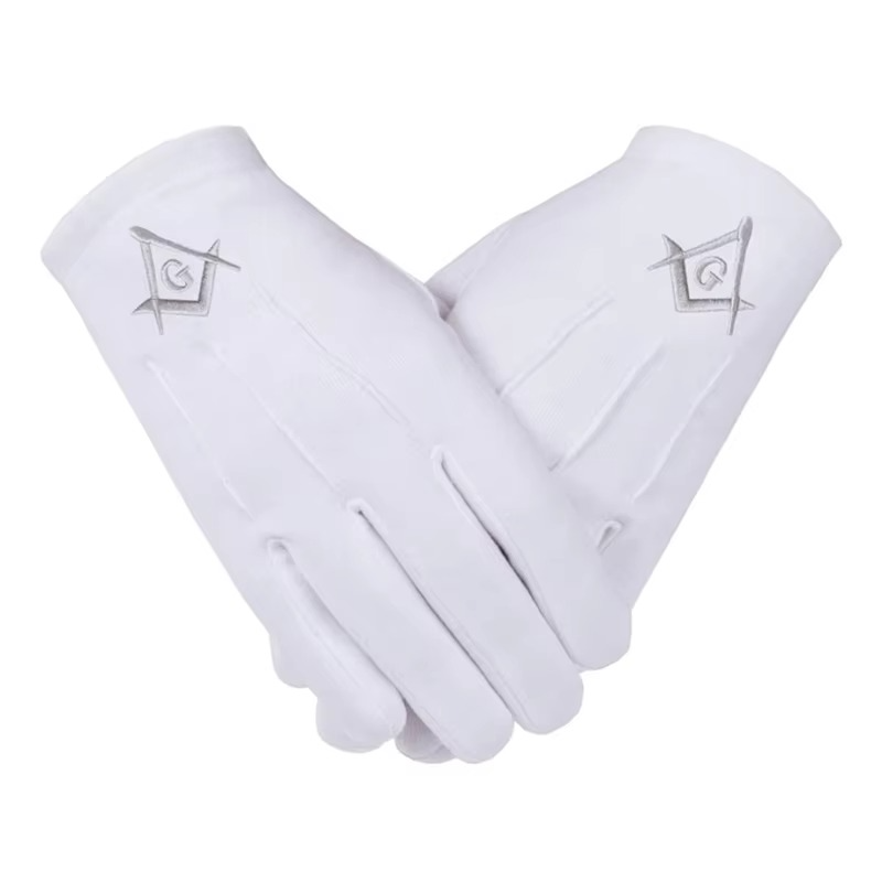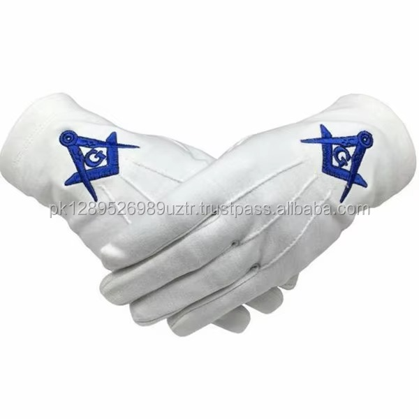ถุงมือมาสเตอร์เมสันบลูลอดจ์ ปักลายด้วยผ้าฝ้ายสีขาวด้วยเครื่องจักร ชุดเครื่องราชอิสริยาภรณ์ฟรีเมสัน ถุงมือเมสัน