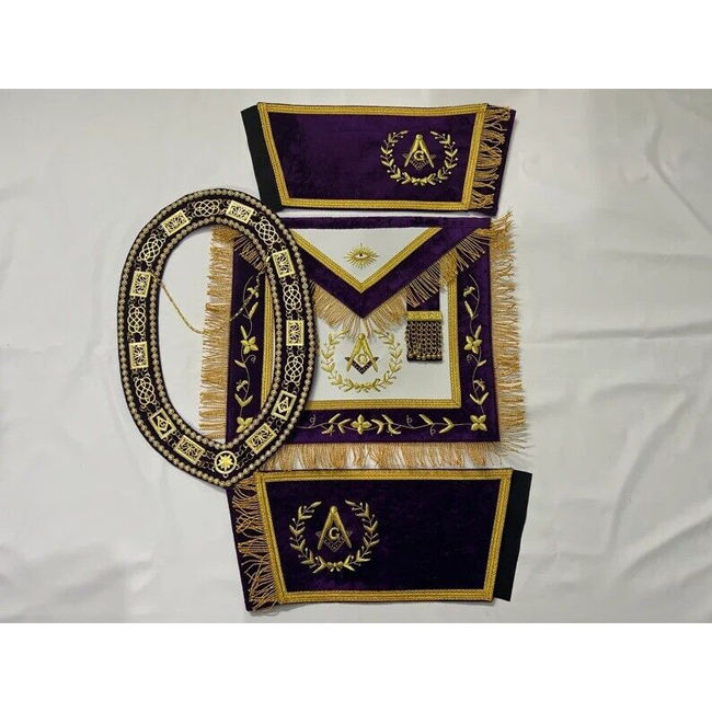 ผ้ากันเปื้อนต้นแบบ Masonic ขอบสีฟ้าพี่น้องตาเห็นทั้งหมด