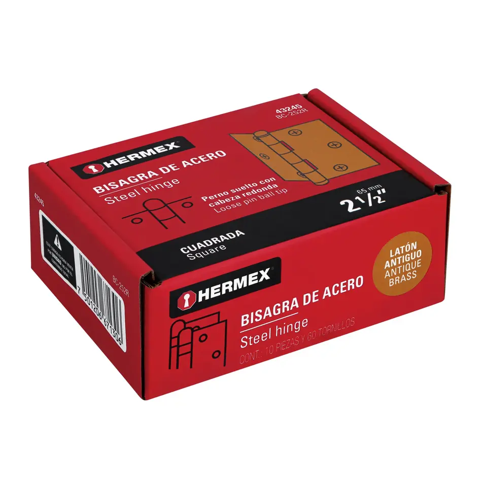 Master with 100 units Square Hinge 2-1/2', Antique Brass, Round Head