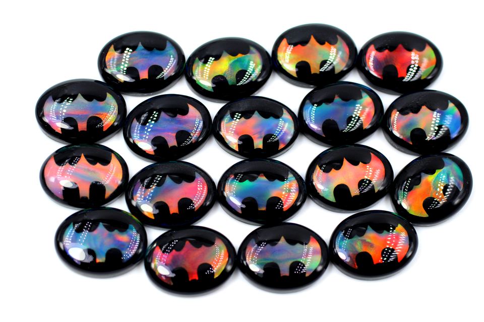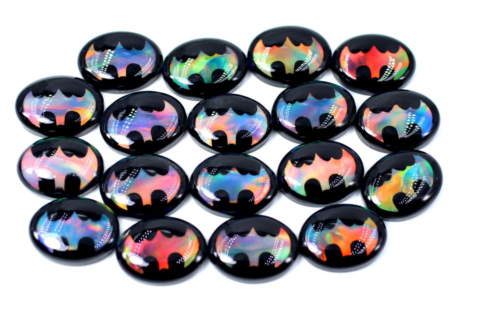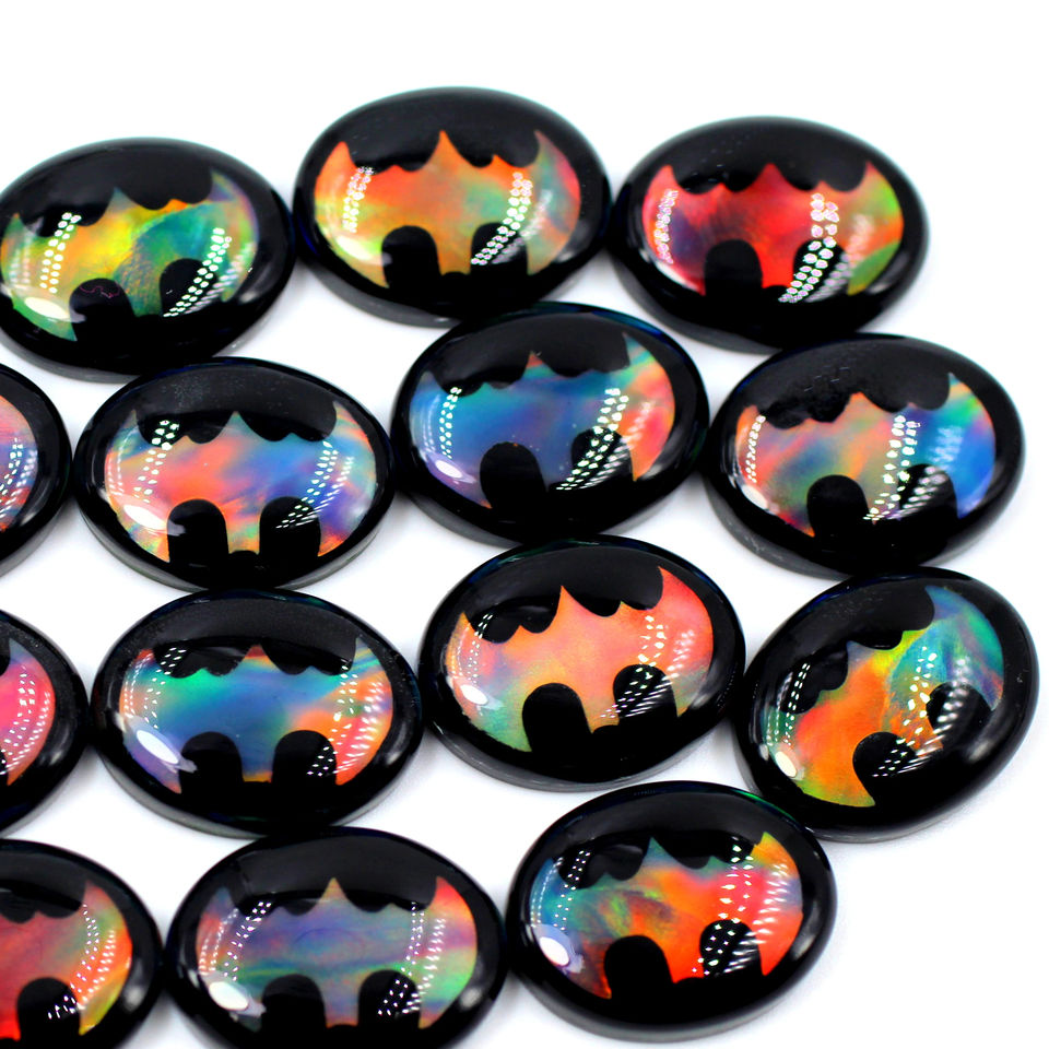 คู่คู่กับหินออโรร่าโอปอลอัญมณีทรงหลังเบี้ยสีดำโอนิกซ์แบทแมนโอปอลรูปวงรีคู่