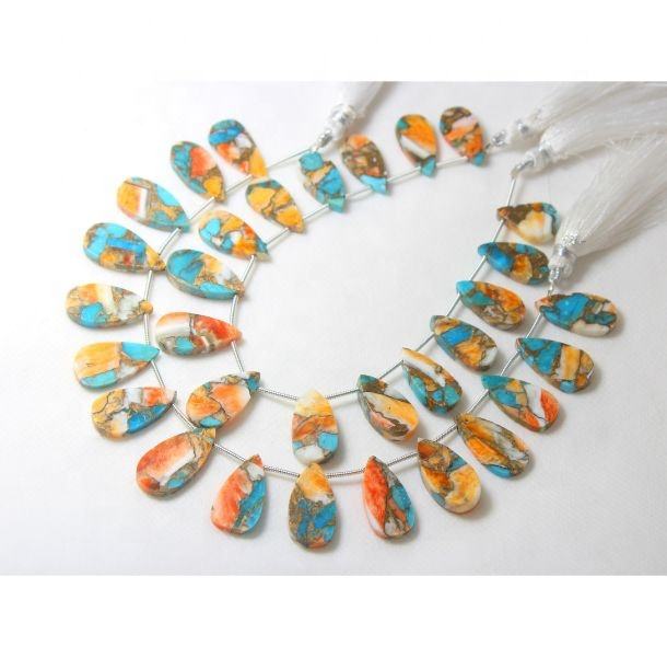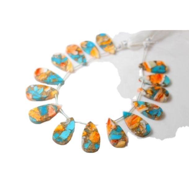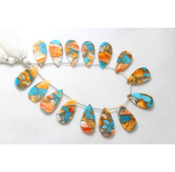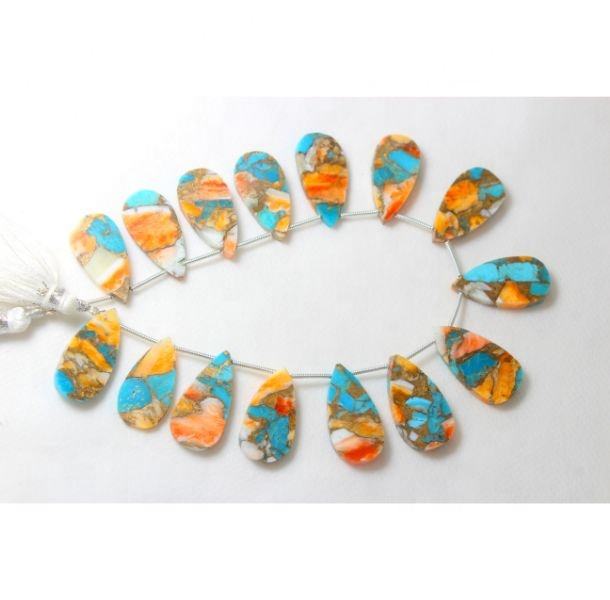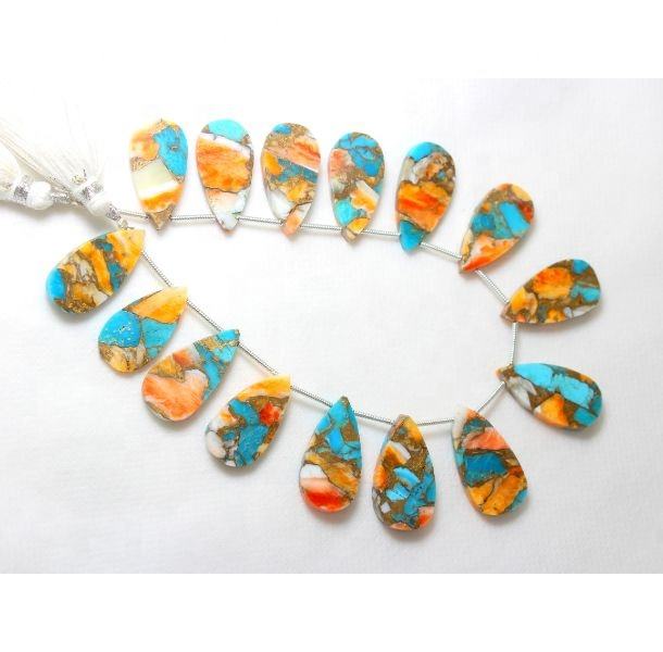 จับคู่หอยนางรมธรรมชาติทองแดงเทอร์ควอยซ์เรียบรูปทรงลูกแพร์ 11X22MM