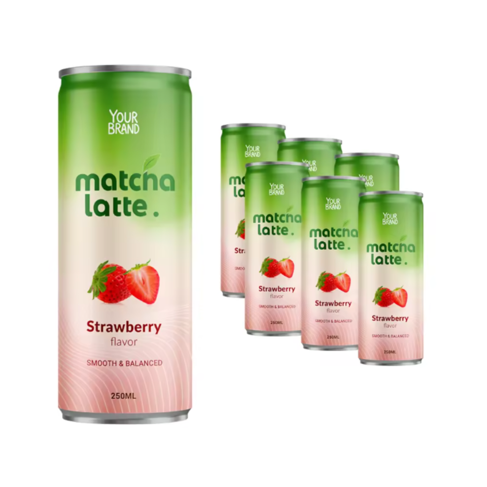 มัทฉะลาเต้ 250 มล. รสสตรอว์เบอร์รี วานิลลา มะพร้าว ผลิตจากพืช นำเข้าจากเวียดนาม รับผลิตแบบ OEM มีตัวอย่างฟรี รับออกแบบ - BRC