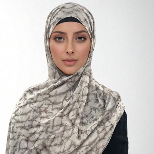 ฮิญาบสตรีมุสลิมผ้าซาตินพิมพ์ลายผ้าโพลีเอสเตอร์ผ้าซาตินพิมพ์ลายตาราง