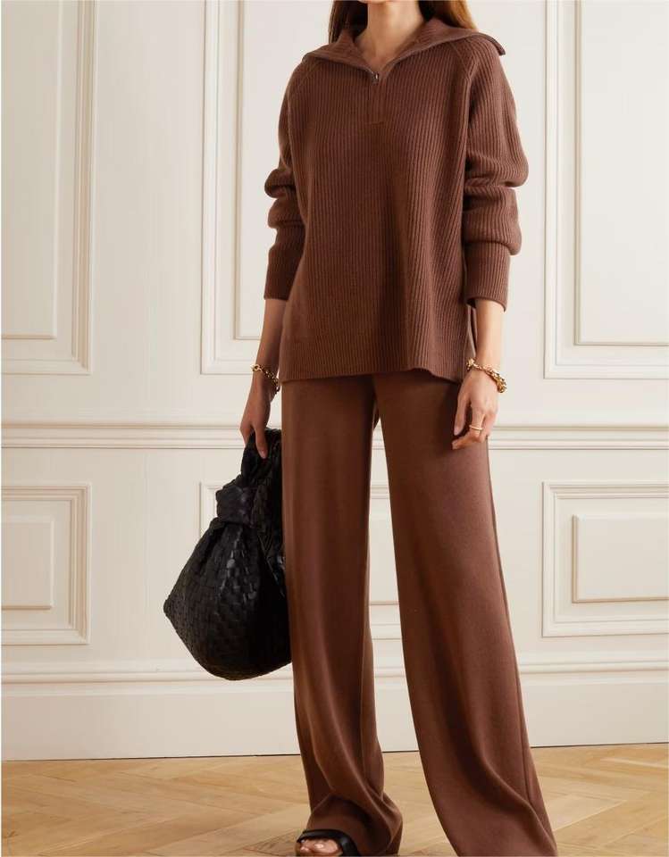 ชุดเสื้อถักซิป1/4สำหรับผู้หญิง2ชิ้นเข้าคู่กันชุดเสื้อสเวตเตอร์ถักซิปรูดครึ่ง1/4สำหรับผู้หญิง