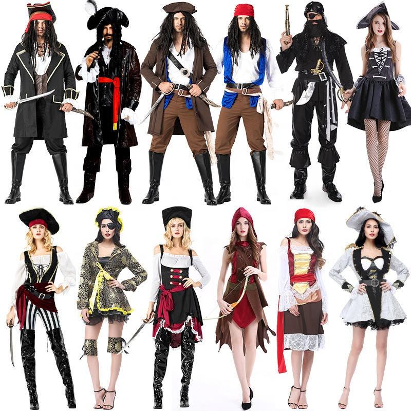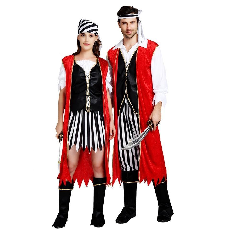 ชุดโจรสลัดแบบยูนิเซ็กซ์ | เสื้อกั๊กและชุดลายทางกัปตันสวอชบัคเลอร์สำหรับผู้ใหญ่ชายและหญิงสำหรับวันฮาโลวีน
