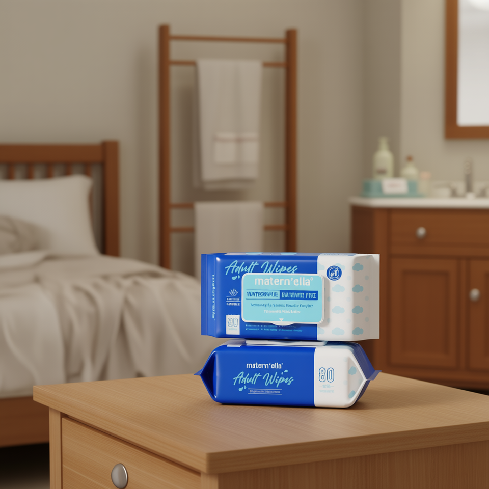 Matern'ella Adult Wipes 80 Count Alcohol Free Skin Care Cloths For Seniors Patient Use