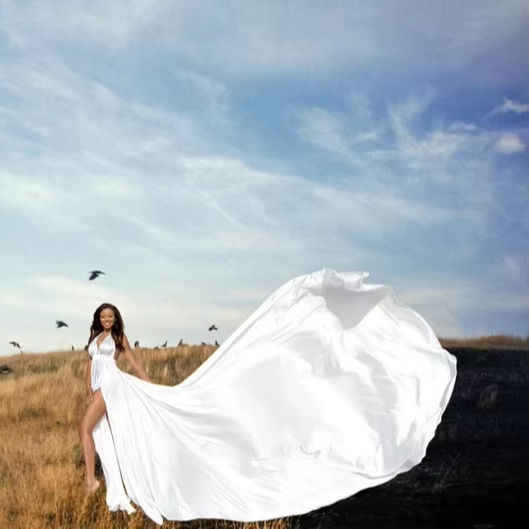 Maternity Long Train Santorini Shoot Trail Gown Baby Shower Shoot Gown Dress Flying Dress for Women