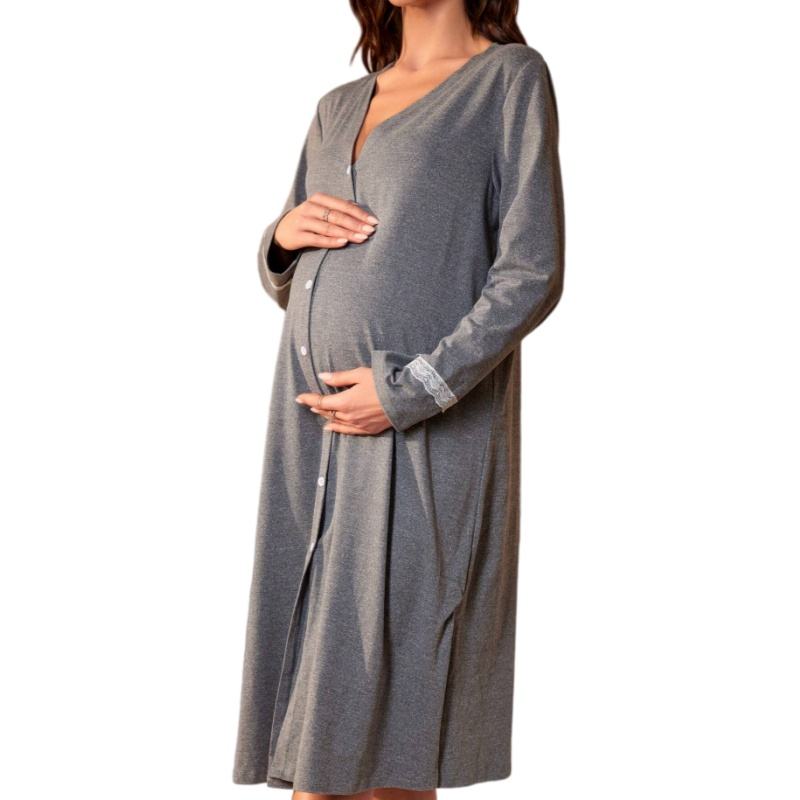 ชุดนอนคนท้อง ชุดนอนคนท้องแขนยาวแบบกระดุมแถวเดียวสำหรับคุณแม่ ชุดนอนคนท้องสำหรับผู้หญิง
