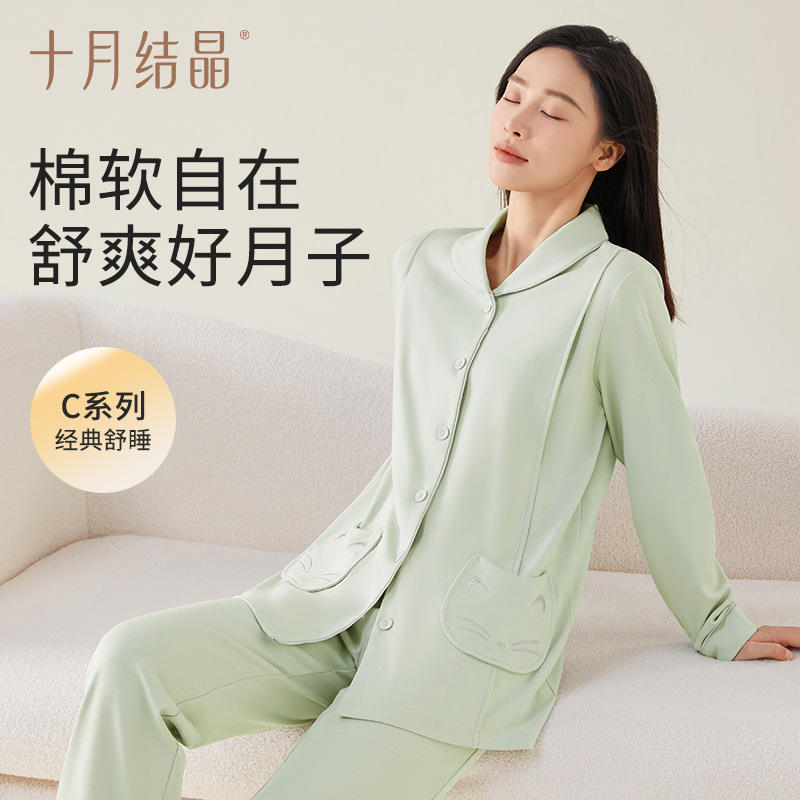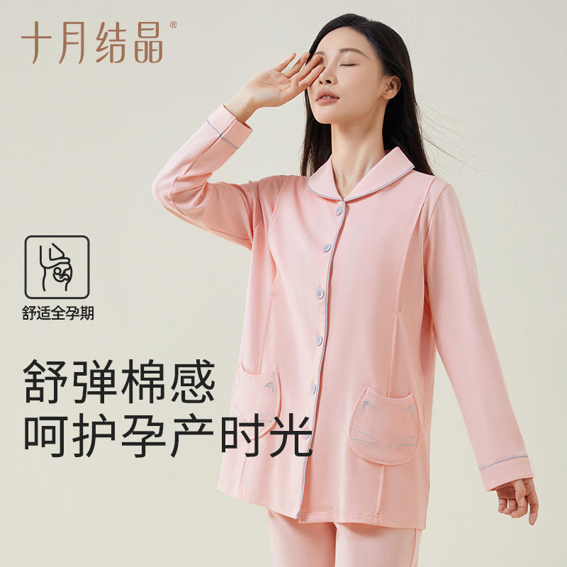 ชุดนอนคนท้องผ้าฝ้ายแท้แขนยาวระบายอากาศได้ดีหลังคลอดสำหรับผู้หญิงฤดูใบไม้ผลิฤดูใบไม้ร่วง