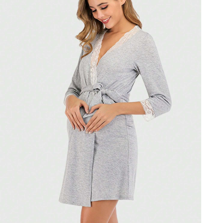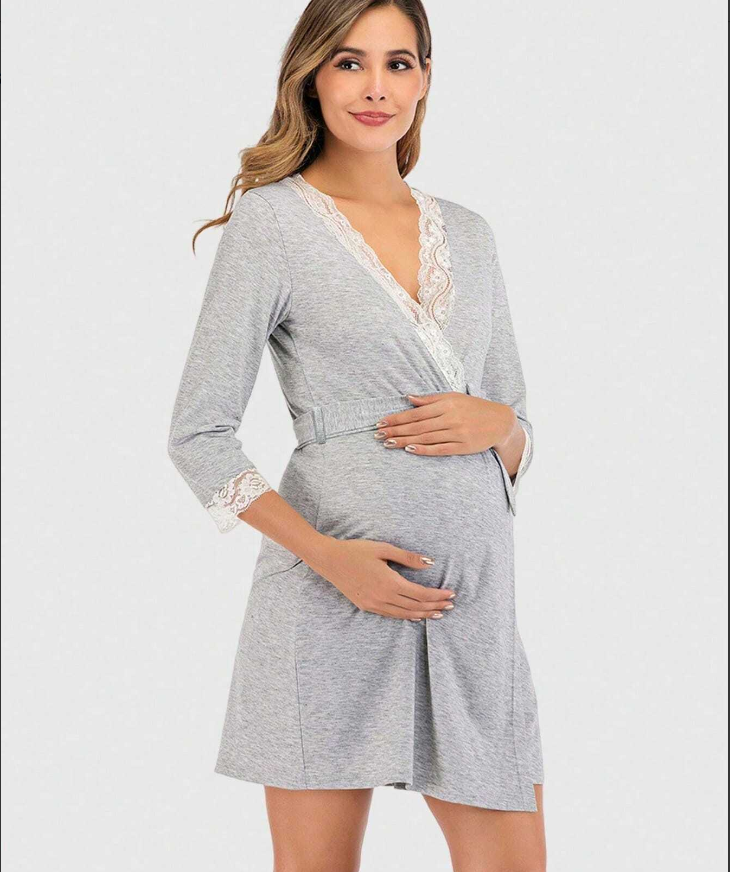ชุดคลุมท้อง เสื้อผ้าสำหรับหญิงตั้งครรภ์ ชุดเดรสลูกไม้แบบชิ้นเดียว ชุดนอนแฟชั่นแบบเย็บต่อผ้า พร้อมสายคาดเอว ชุดเดรสสำหรับหญิงตั้งครรภ์