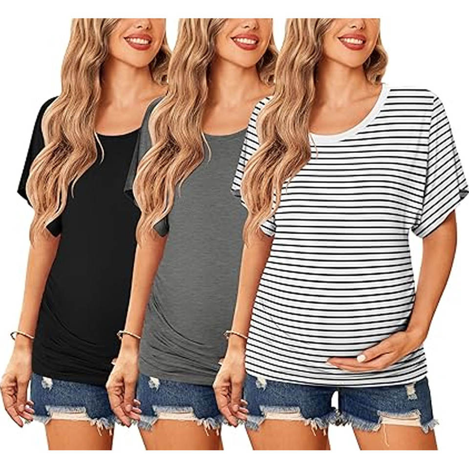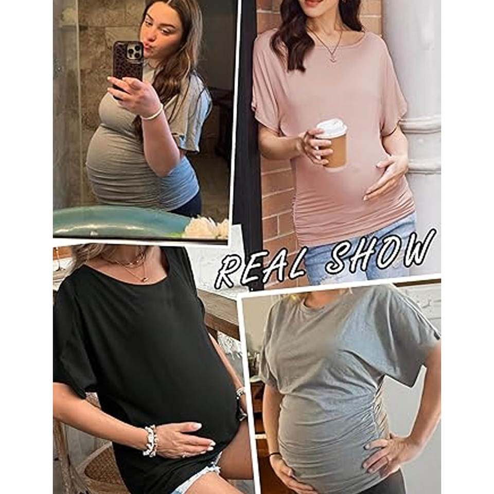เสื้อคนท้องแขน Dolman เสื้อแต่งระบายแขนเสื้อท่อนบนเสื้อคลุมลำลองสำหรับหญิงตั้งครรภ์เสื้อให้นมบุตรผ้าคอตตอน100% ฤดูร้อน