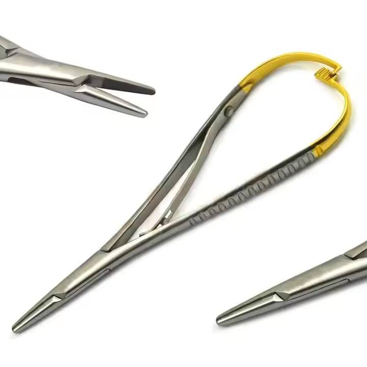 ที่จับเข็ม Mathieu แบบแมนนวล สแตนเลสสตีล TC 17 ซม. ชุดอุปกรณ์ทันตกรรม เครื่องมือผ่าตัด Navel