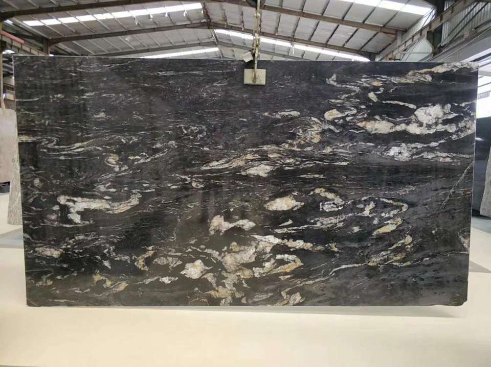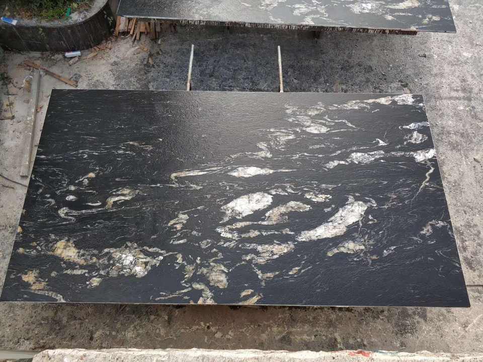 แผ่นหินแกรนิตไทเทเนียมเมทริกซ์ แผ่นหินแกรนิตสีดำผิวหนัง แผ่นและกระเบื้องหินแกรนิตสำหรับเคาน์เตอร์