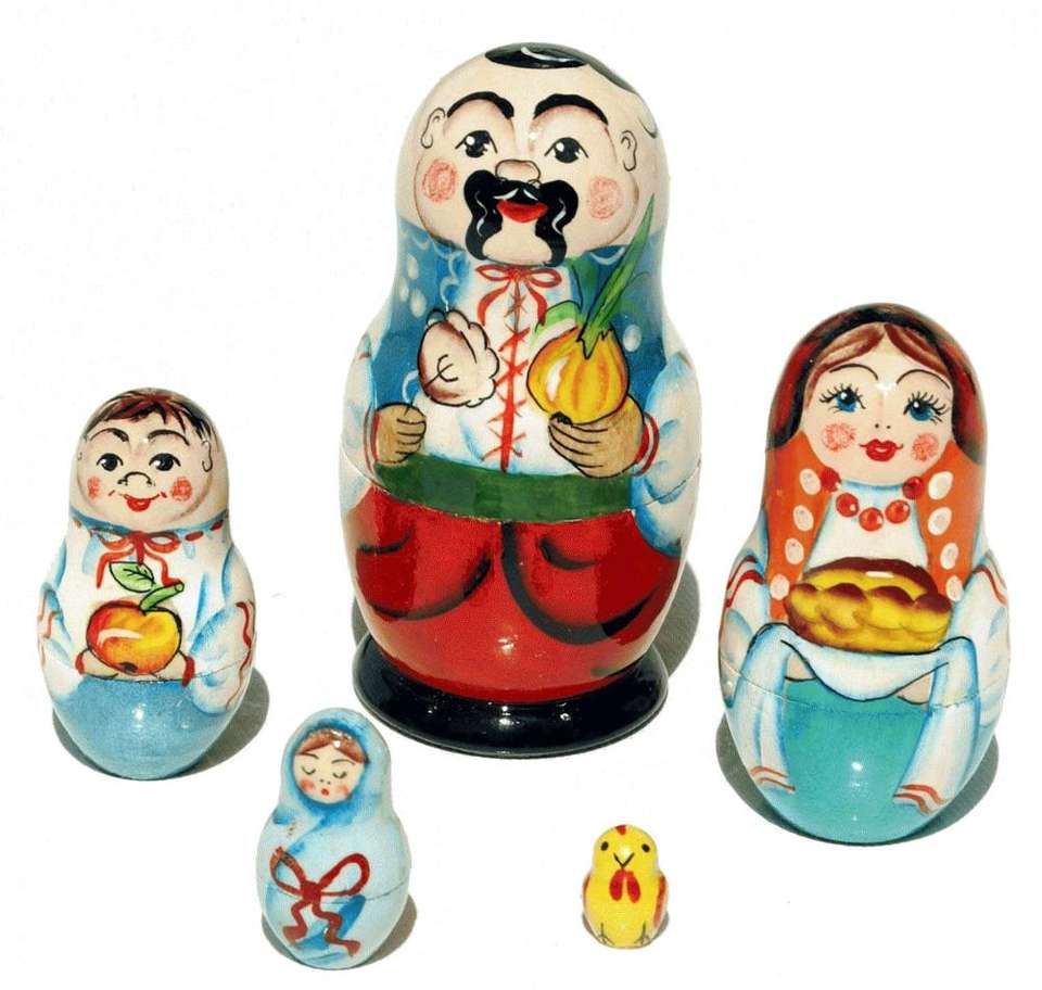 Matryoshka Babushka ตุ๊กตาทำจากไม้สไตล์รัสเซีย,คอสแซคกับเกี๊ยวและหัวหอม,ภรรยา,ลูกชาย,ลูกสาวของเขา