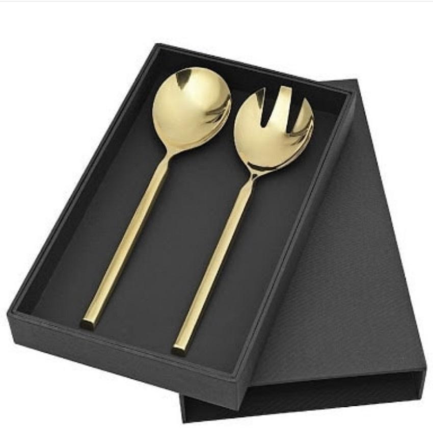 ชุดช้อนตักสลัดสีทองพร้อมด้ามจับเรซิ่น ช้อนตักเค้กสแตนเลส ชุดช้อนตักชีส ชุดอุปกรณ์บนโต๊ะอาหาร ช้อนสลัดสีทอง มีด