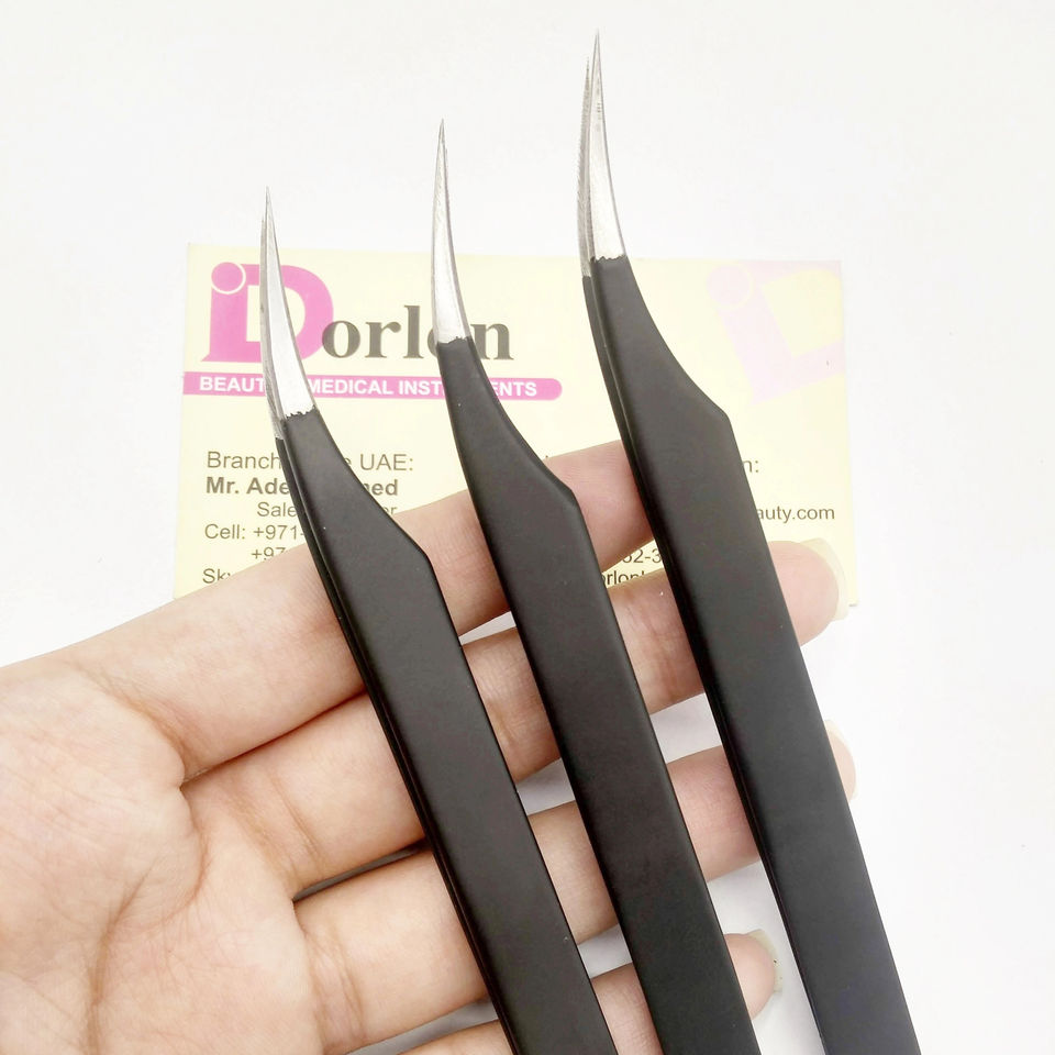 แหนบคีบขนตาเคลือบสีดำด้านแหนบสแตนเลสแหนบขนตาที่มีคุณภาพสูง