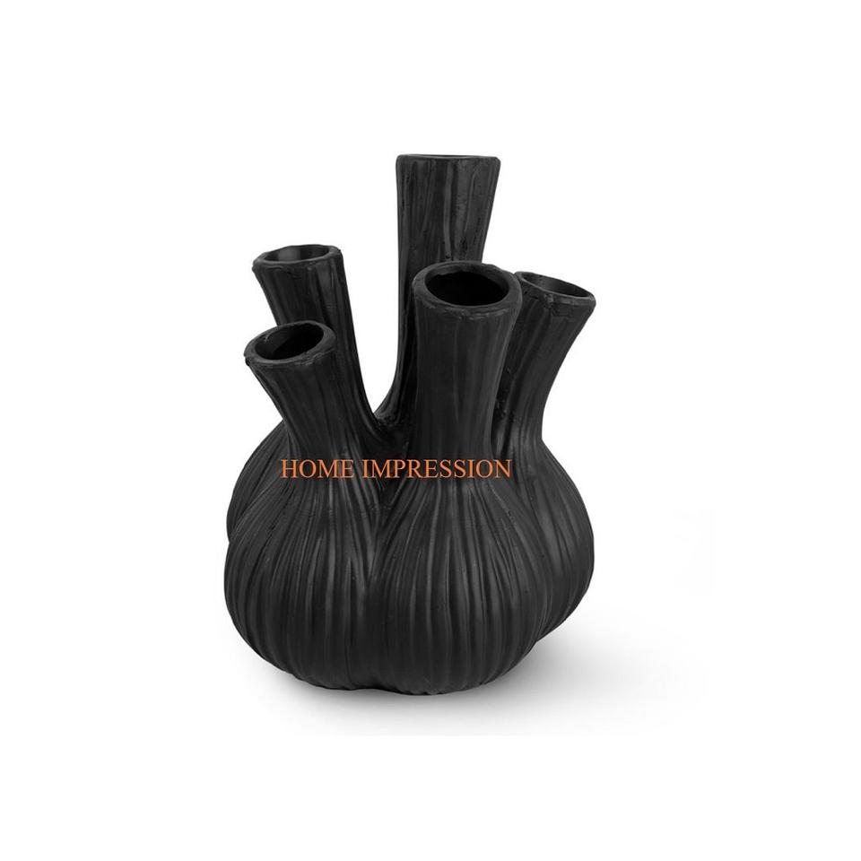 แจกันดอกไม้ทำด้วยมือสีดำด้านแจกันตกแต่งบ้านและห้องนั่งเล่นขนาดใหญ่