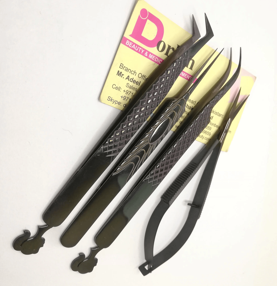 ชื่อผลิตภัณฑ์:แหนบขนตาสีดำด้านและกรรไกรสปริงพร้อมปลายพลาสมาสีดำ